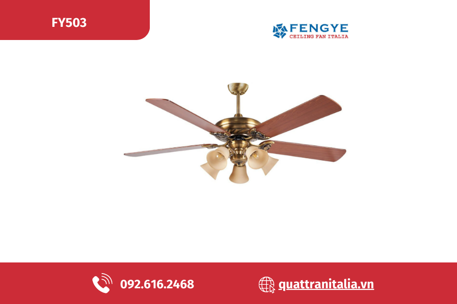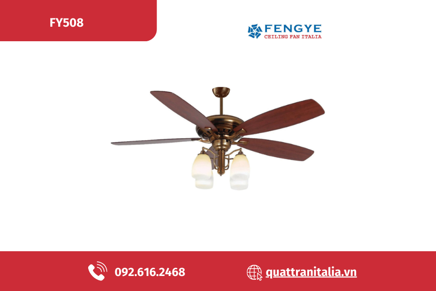 Các mẫu quạt trần đèn chùm mang nhãn hiệu FENGYE được thiết kế sang trọng với rất nhiều mẫu mã kiểu dáng khác nhau. Cánh quạt được làm từ các chất liệu gỗ Plywood hay gỗ tự nhiên nguyên khối cao cấp. Màu thân quạt là màu đồng thiếc, Niken, màu đồng cổ Pháp hay vàng gold,... toát lên vẻ sang trọng, quý phái cho nội thất căn nhà.
