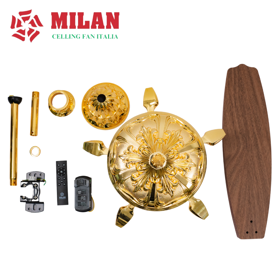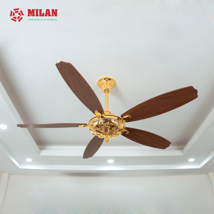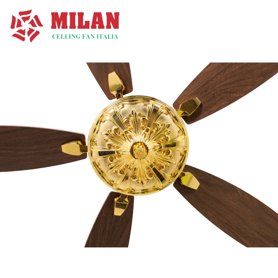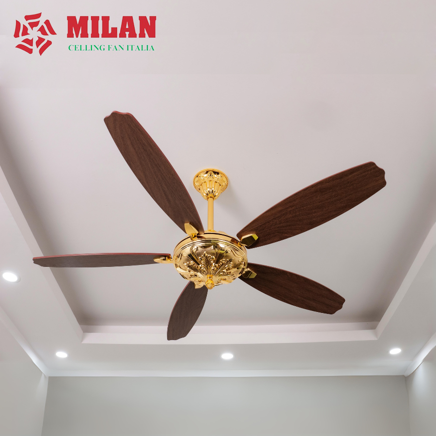 Sản phẩm quạt trần FY961 KĐ (KHÔNG ĐÈN) - MẠ VÀNG 24K mang nhãn hiệu MILAN, được thiết kế và sản xuất theo tiêu chuẩn công nghệ của Italia, chất lượng số 1 châu Âu. Mẫu quạt trần Italia FY961 KĐ (KHÔNG ĐÈN) - MẠ VÀNG 24K thuộc dòng sản phẩm cao cấp, mang đến vẻ đẹp cổ điển, sang trọng, đẳng cấp cho đa dạng không gian từ phòng khách, phòng ngủ, biệt thự, sảnh các tòa nhà,...