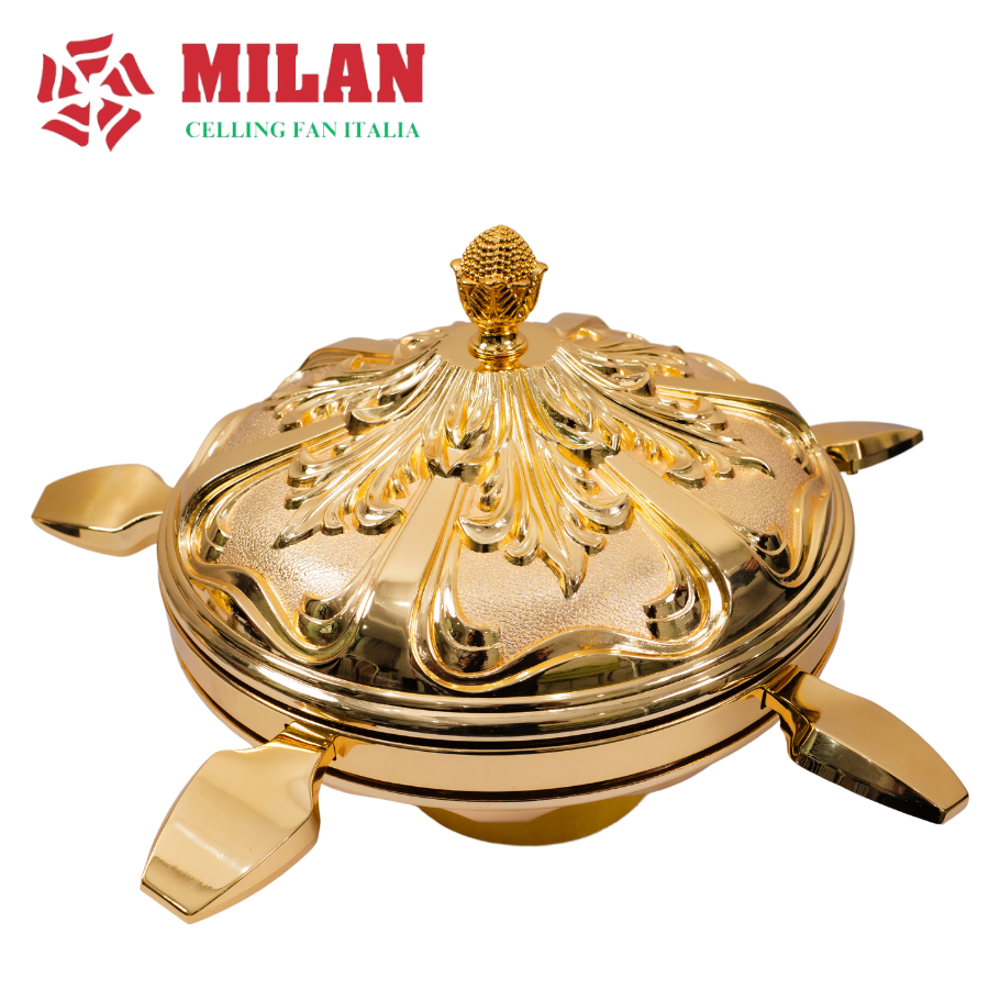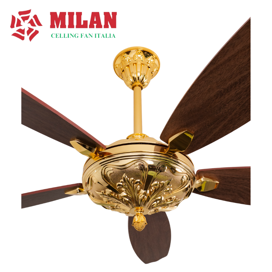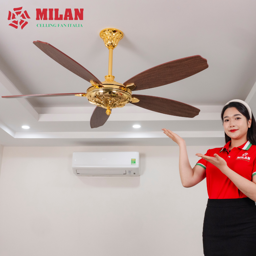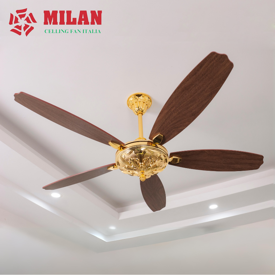 Sản phẩm quạt trần FY961 KĐ (KHÔNG ĐÈN) - MẠ VÀNG 24K mang nhãn hiệu MILAN, được thiết kế và sản xuất theo tiêu chuẩn công nghệ của Italia, chất lượng số 1 châu Âu. Mẫu quạt trần Italia FY961 KĐ (KHÔNG ĐÈN) - MẠ VÀNG 24K thuộc dòng sản phẩm cao cấp, mang đến vẻ đẹp cổ điển, sang trọng, đẳng cấp cho đa dạng không gian từ phòng khách, phòng ngủ, biệt thự, sảnh các tòa nhà,...