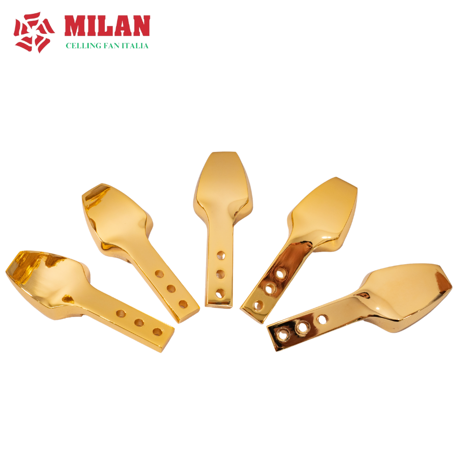 Thân quạt được làm bằng chất liệu nhôm, đúc tạo khắc vân hoa chi tiết tỉ mỉ và được mạ vàng 24K cao cấp, sang trọng. Mang đến không gian nội thất sang trọng, đẳng cấp, thể hiện gu thẩm mỹ tinh tế của gia chủ.