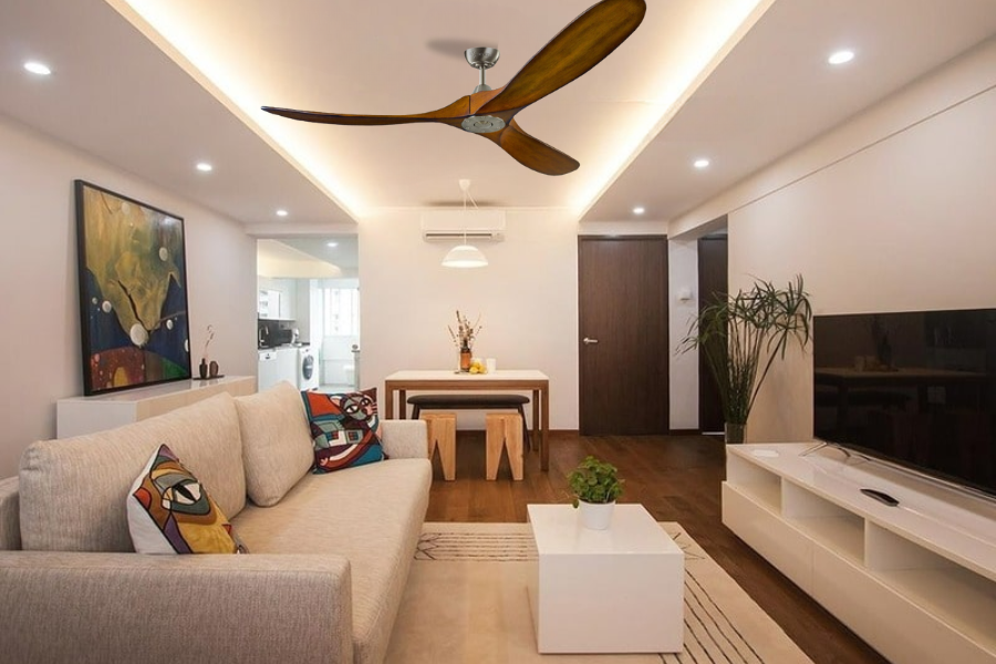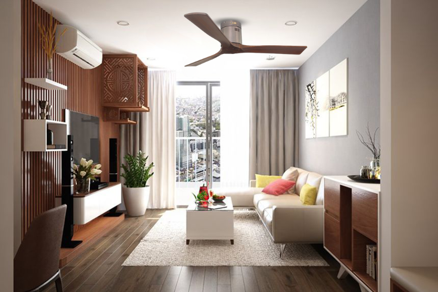 Với trần nội thất có độ cao từ 2.6 - 3m, bạn nên lựa chọn các loại quạt trần có cổ ngắn với chiều dài ti ngắn từ 10 - 30cm sao cho khoảng cách từ sàn đến quạt lớn hơn 2.5m - 2.7m đảm bảo an toàn cho mọi người.