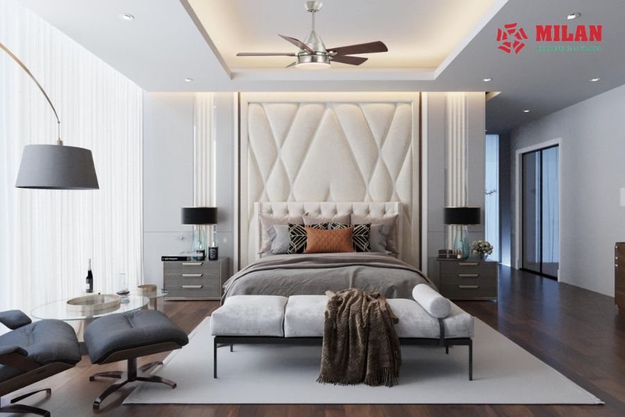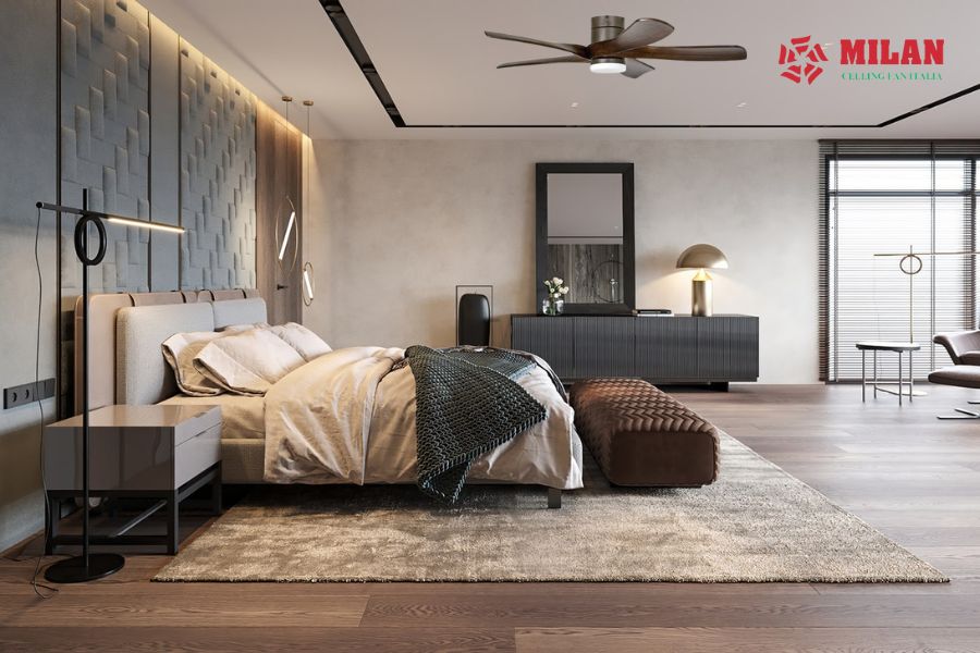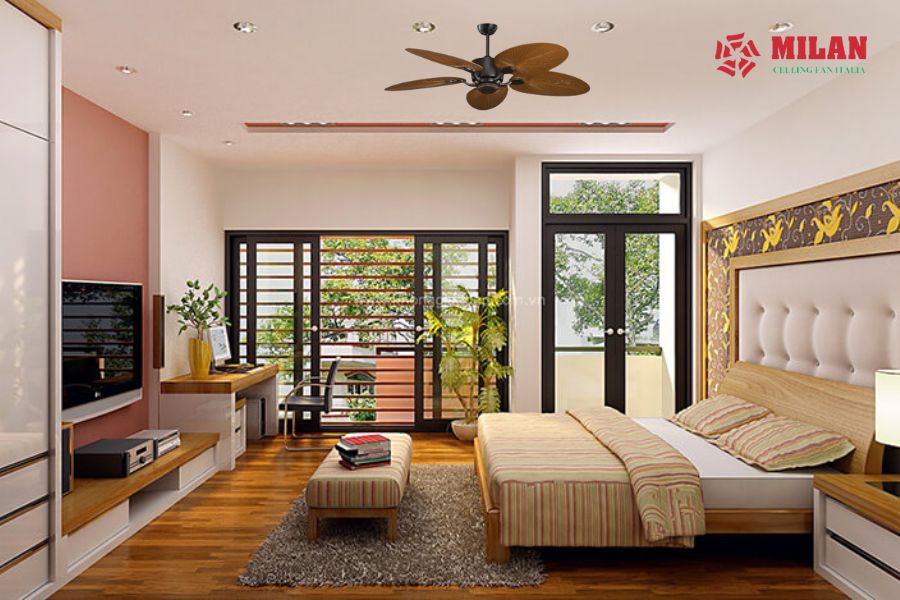 Bên cạnh những khả năng làm mát, tiết kiệm diện tích và điện năng thì quạt trần cũng là một trong những vật trang trí nội thất rất được yêu thích. Với nhiều kiểu dáng, mẫu mã, giá thành hợp lý và thích hợp với nhiều kiểu thiết kế phòng ngủ khác nhau.