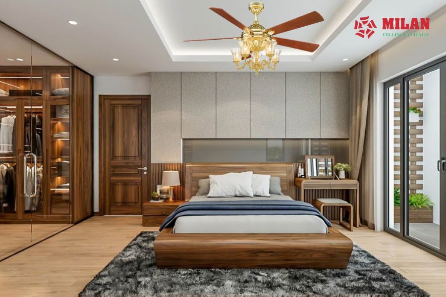 Vị trí lắp đặt: thường sẽ là giữa trần nhà nhưng bạn cũng có thể lắp đặt linh động hơn theo phong cách thiết kế của phòng ngủ.